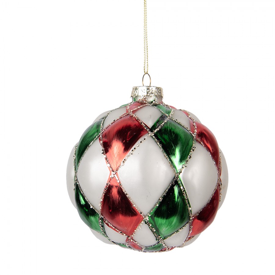 Božična krogla belo-rdeča 10 cm – steklo