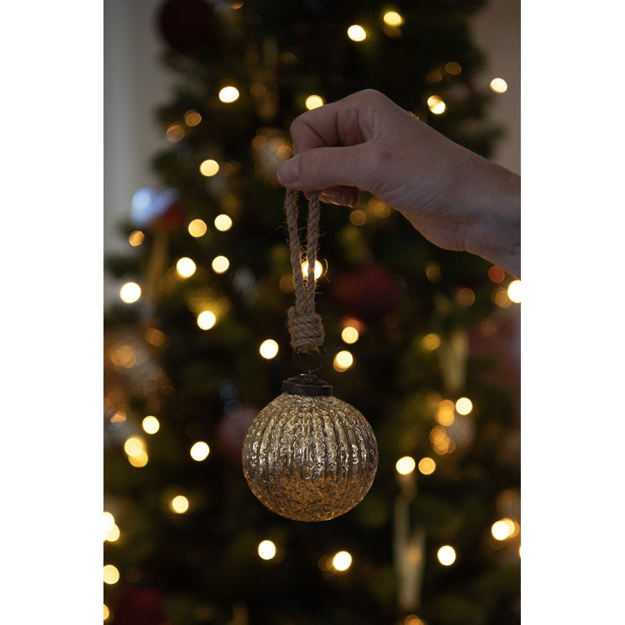 Ustvarite praznično eleganco z očarljivo zlato stekleno božično kroglo. Ta čudovit okrasek bo vaši jelki dodal sijaj, toplino in pravo praznično vzdušje, hkrati pa bo prostor obogatil z edinstveno eleganco. Primerna za božično jelko, venčke ali praznične aranžmaje.